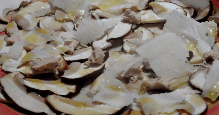 Una altra versió per preparar els ceps, és tallar-los en fines capes com si fos un “carpaccio”, deixar-los macerar en oli, sal i pebre durant unes hores, els guardarem durant una estona a la nevera i llavors els col·locarem directament al plat (crus). Els hi podeu posar uns encenalls de parmesà, sense passar-nos per no matar els gust del bolet que és l’element principal d’aquesta recepta i posar-hi una mica de julivert per donar-hi color al plat. Un altre acompanyament pot ser un fetge d’ànec fregit a baixa temperatura en fines capes sobre el mateix “carpaccio” de cep.