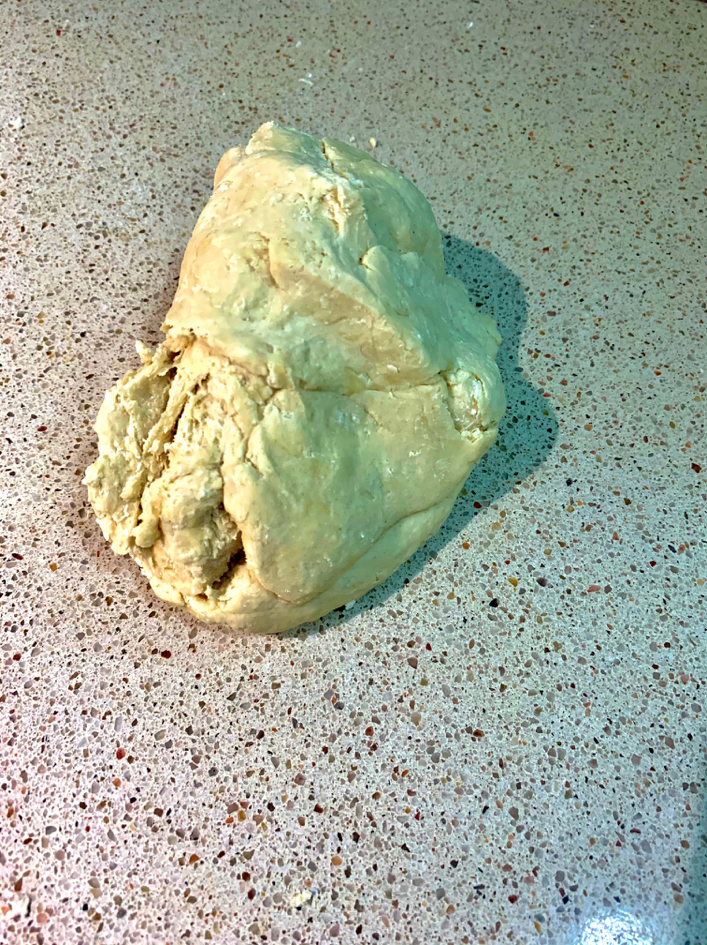 Ara ve la part de pastar la massa i ho farem estirant la pròpia massa, tornant-la a ajuntar prement amb els palmells de les mans i els dits i tornem a repetir l’operació varies vegades fins que veiem que la massa ja és ben homogènia i rectificant de farina o d’oli si veiem que no queda tot integrat i ben lligat (en menys de 5 minuts ja ho tenim a punt). Agafarem tot plegat i ho tallarem en 4 trossos per fer 4 pizzes més endavant, però abans la deixarem reposar una hora embolicada en un film de plàstic de cuina.