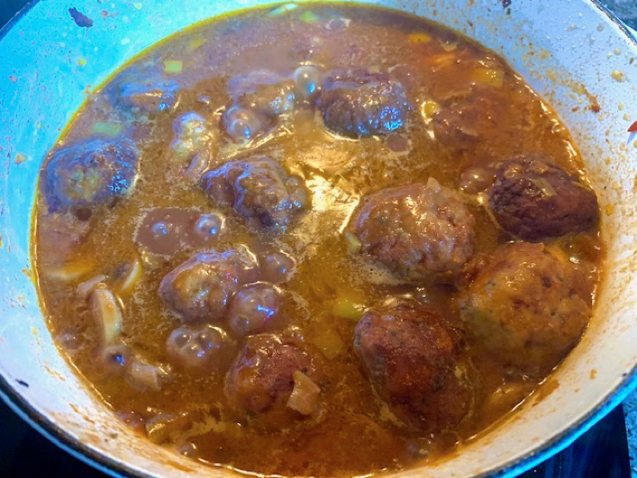 Enfarinarem les mandonguilles i les courem amb oli d’oliva verge fins que quedin ben torrades per fora (sense passar-se), val més que quedin un pel crues per dins.