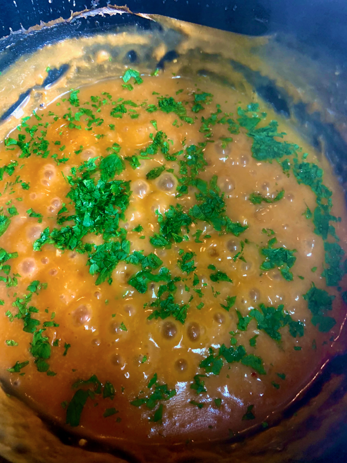 En aquest punt tirarem tres gots d’aigua (o brou de peix), una mica de sal i seguim remenant. Quan comenci a bullir el caldo, el deixarem 10 minuts més perquè es vagi espessint la salsa. Un cop transcorregut aquest temps, posem la meitat del julivert que prèviament haurem picat i ja podem tirar els musclos dins la cassola i la tapem. A la que veiem que els musclos ja s’han obert, pararem el foc i posarem la resta del julivert per sobre per decorar el plat. Abans de servir-ho, podem tastar la salsa amb una cullereta i encara som a temps de corregir el punt de sal o de prebre.