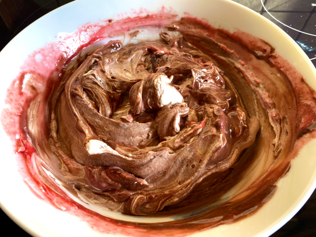 Com diu molt bé el Nandu Jubany, a la cuina no es pot tirar res, així que aprofitant la crema de mascarpone que m’ha sobrat, el suc dels fruits vermells i en aquest cas una crema de xocolata que m’ha quedat d’unes altres postres, ho remenarem tot en un bol i si us he de dir la veritat, ha sortit una mousse de “collons” i molt original.